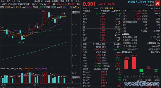 资金押注“跨年行情”?光模块龙头迭编削高,创业板东说念主工智能ETF(159363)单日获净申购1亿份